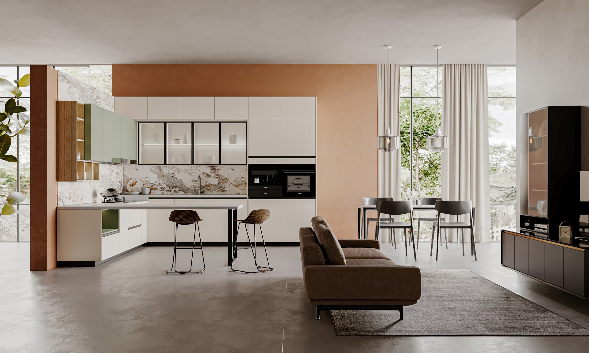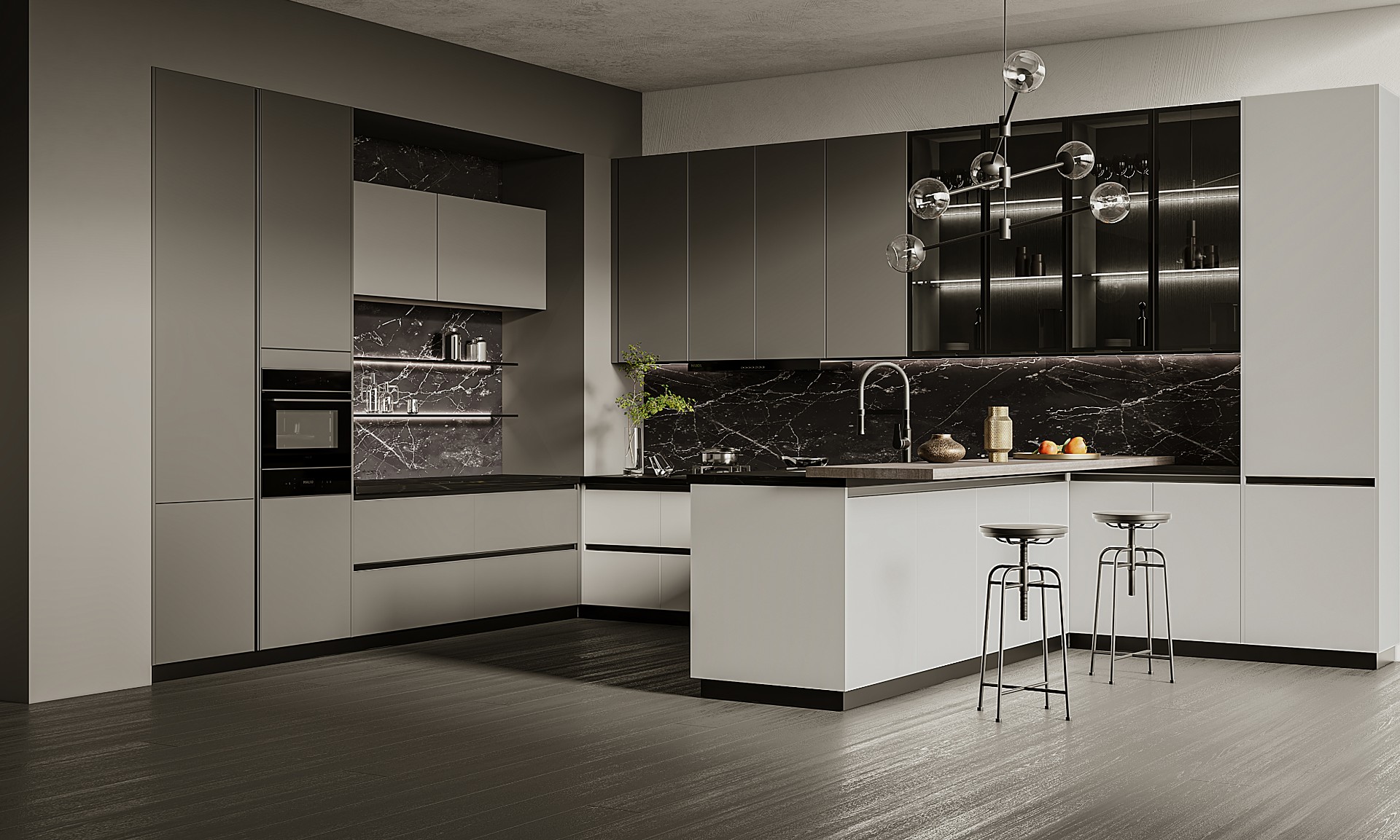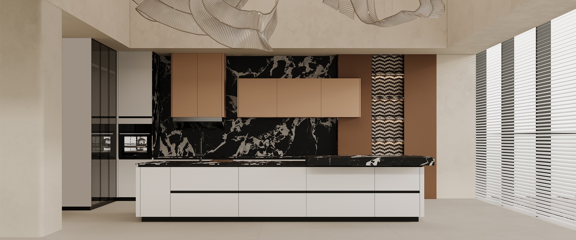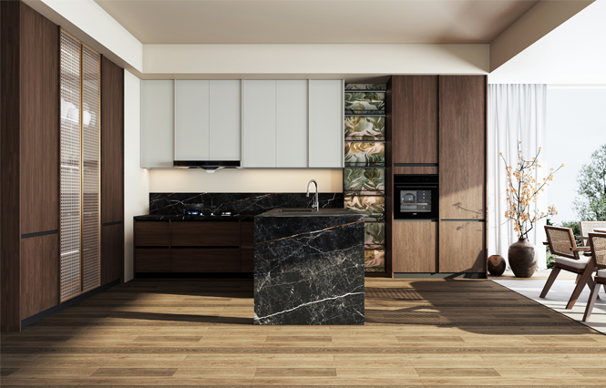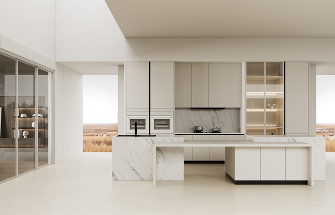 通過米蘭廚柜量體裁柜,定制出適合主廚下廚的烹飪區(qū)和洗滌區(qū)的舒適高度。